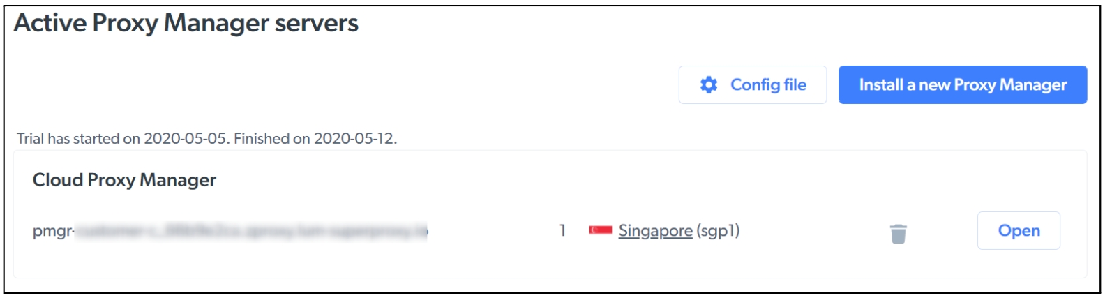Click the open button on the Cloud Proxy Manager row